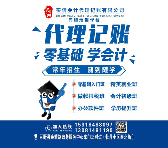 實(shí)信會(huì)計(jì)公司是經(jīng)巨野縣財(cái)政局批準(zhǔn)、在工商局登記注冊(cè)的具有獨(dú)立法人資格的專業(yè)代理記賬和財(cái)稅咨詢機(jī)構(gòu)。公司擁有良好的經(jīng)營環(huán)境和高素質(zhì)的專業(yè)人才,擁有經(jīng)驗(yàn)豐富的財(cái)務(wù)、稅務(wù)等方面的高級(jí)會(huì)計(jì)師、高級(jí)國際財(cái)務(wù)管理師、等中高級(jí)財(cái)稅專家和精通會(huì)計(jì)電算化核算的專業(yè)團(tuán)隊(duì)。